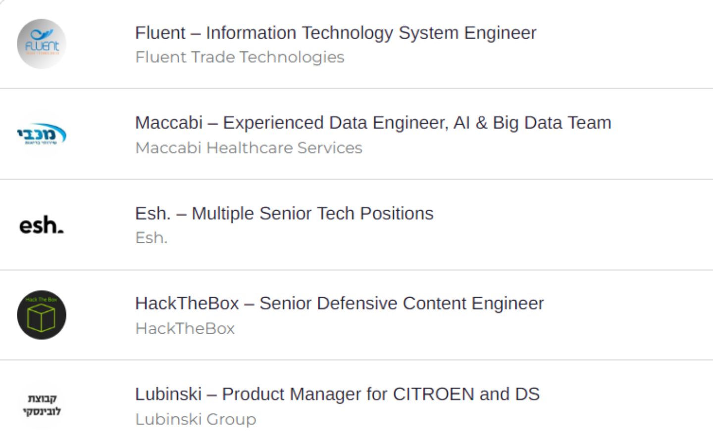 6. Jobs Board: Experienced Data Engineer at Maccabi, Information Technology System Engineer at Fluent, and more.